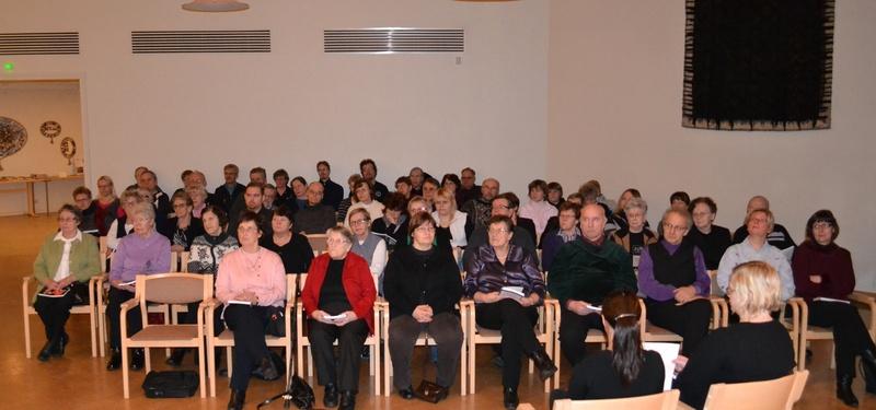 Rauman seurakuntatalo, lauantaina 4.2.2012. Pienehkö seurakuntasali oli kutakuinkin täynnä, vaikka kotona aamulla pakkaslukema olikin yli 28 asteen. Rauma on minulle tuttu paikka monestakin syystä. Paikallisessa helluntaiseurakunnassa olen aina marraskuun lopulla vieraillut Iltampun merkeissä lähes kymmenen vuoden ajan. Nyt olin luterilaisessa seurakunnassa ensimäistä kertaa ja yhteistyö sujuikin erittäin mallikaasti. Kirkkoherra Seppo Sattilainen oli tilaisuudessa mukana alusta loppuun. Hän myös puhui tilaisuuden alussa. Sanoinkin tilaisuudessa, että vaikka Sattilaisen kanssa olemmekin näissä merkeissä ensimäistä kertaa, niin kirkkoherra tuntuu olevan kansan mies, jota ei tarvise jännittää ja miettiä miten päin täällä tulee kulkea ja olla. Sattilainen oli valmis jatkamaan yhteistyötä Iltalampun kanssa myös tulevina vuosina. Heimon osuus oli erittäin koskettava. Koin, että Raumalla tilaisuuden teema, Taivas ehjäksi rakastaa, toimi erinomaisella tavalla. Sanoinkin lopussa, että olen kokenut, että tänä iltana Taivas on rakastanut teitä sinne tuoleihinne. Monet liikutettuina jäivät vielä saliin toisten siirtyessä nauttimaan Rauman seurakunnan tarjoamia pöydän antimia. Toiset vielä kahvihetken jälkeen pyysvät Heimolta lisää lauluja.