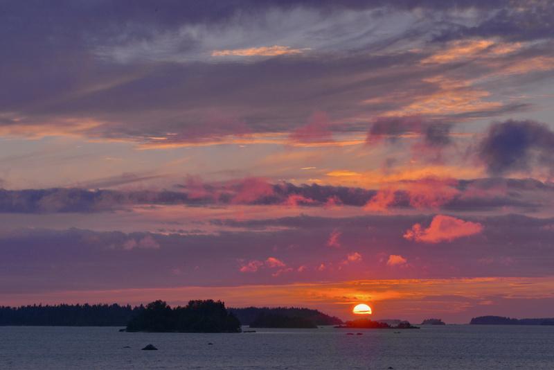 Heinäkuun kuva Oravaisista 22.6.2012. Mutta Jeesus vastasi heille: "Illalla te sanotte: 'Tulee kaunis ilma, kun taivas ruskottaa'. Matt.16:2